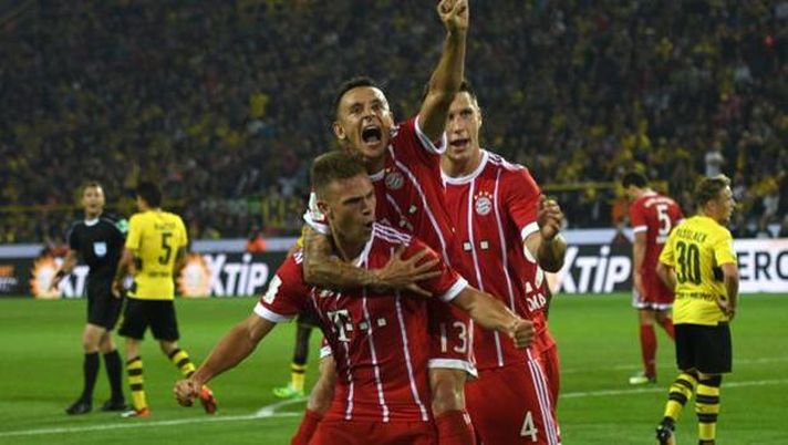 LA GARA — Viste le assenze di Robben e James, Ancelotti sceglie Ribery e Müller come esterni del 4-3-3 con Lewandowski punta centrale. A centrocampo esordio sia per Rudy (uno dei migliori) che per Tolisso. Nel Dortmund Götze dà forfait all’ultimo (problemi alla schiena), mancano anche Schürrle, Reus, Weigl e Guerreiro. Lo stadio è tutto esaurito (81.360 biglietti venduti), e lo spettacolo è assoluto. Al 3’ la prima occasione è del Dortmund: il tiro di Sahin però esce di poco. Il Bayern Monaco inizialmente traballa: il ritmo di gioco dei bavaresi è basso e faticano a far circolare la palla. Il Dortmund sembra star meglio fisicamente ma col tempo la squadra di Ancelotti prende il controllo tattico della partita. All’11’ lancio di Müller per Lewandowski che però spara alto. Al 12’ arriva il gol del Dortmund: Pulisic ruba palla a Javi Martinez e si ritrova solo contro Ulreich e fa 1-0. Il Bayern però c’è e risponde subito: al 15’ ci prova Ribery, ma Bürki para. Già al 18’, però, arriva il pareggio. Kimmich approfitta della difesa altissima del Dortmund per inserirsi sulla destra e andare al cross per Lewandowski che da due passi la butta dentro per l’1-1. L’arbitro Zwayer chiede il supporto della moviola (all’esordio in Germania) per assicurarsi della regolarità della posizione di Kimmich e convalida quello che è l’ottavo gol di Lewandowski alla sua ex squadra. Anche il Dortmund prova a reagire con una bella girata di Castro al 24’, ma poi la benzina finisce e il Bayern prende definitivamente il sopravvento. Al 31’ Ribery se ne va sulla sinistra e serve Müller, ma Bürki si esalta e respinge. Al 35’ è Kimmich a pescare Müller, che però colpisce il palo di testa.