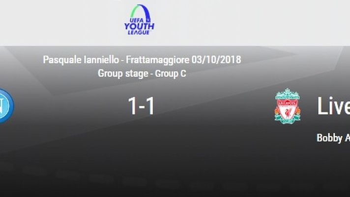 Youth League, Napoli-Liverpool 1-1: pazzesco pareggio degli azzurri a pochi secondi dallo scadere