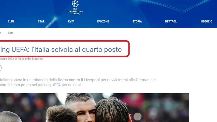 Quest'oggi il sito ufficiale della UEFA ha pubblicato il seguente articolo, nel quale si parla dell'avvenuto sorpasso della Germania sull'Italia al 3° posto del Ranking UEFA per Nazioni.