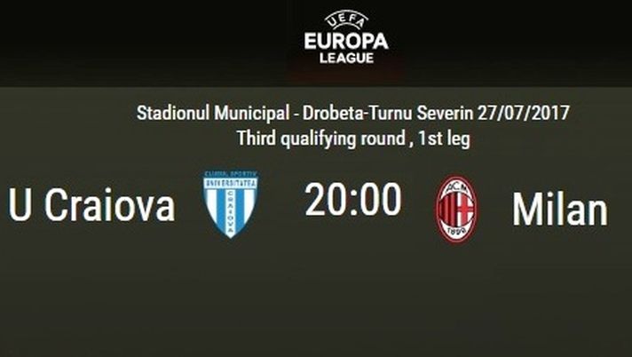 L’avventura europea del nuovo Milan di Vincenzo Montella partirà dunque dalla Romania, dove giovedì affronterà i padroni di casa dell’Universitatea Craiova, guidata in panchina dal tecnico italiano Devis Mangia. L’incontro si giocherà allo Stadionul Municipal di Drobeta-Turnu Severin.