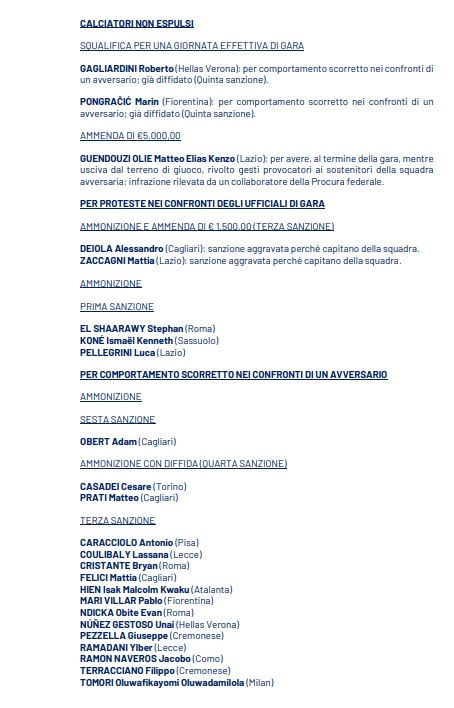 IL COMUNICATO DEL GIUDICE SPORTIVO