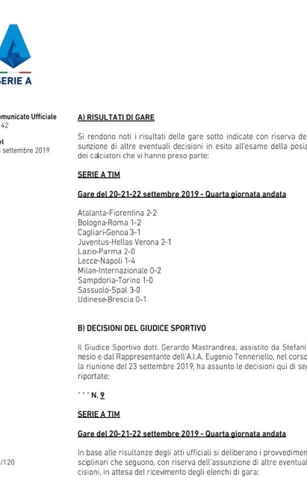 - 123 reti nei primi 4 turni: le nuove regole “funzionano”!