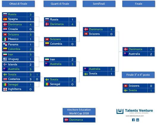 Nell’immagine sottostante è riportato il tabellone delle fasi finali dell’Education World Cup 2018