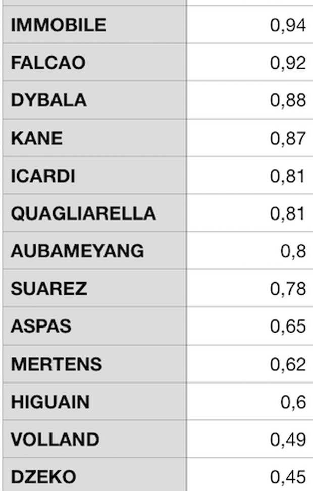 Ma chi è il calciatore che segna maggiormente a seconda del numero delle partite giocate? In testa resta sempre Salah che con Neymar alle sue spalle supera il muro della rete a partita. Sul podio a pari merito due grandissimi come Lewandowski e Cavani che arrivano a 0.,97. In questo caso Immobile si piazza al settimo posto con una media di 0,94 gol a partita preceduto da Messi e Aguero.