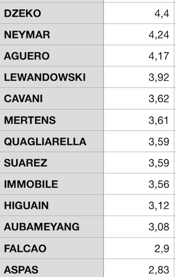 Per segnare gol è necessario calciare il pallone verso la porta avversaria. Vediamo dunque chi è tra questi magnifici 20 cannonieri quello che più volte calcia in porta. A vincere la classifica è Harry Kane che ha una media tiro a partita di 5,49. Solo altri due calciatori Messi e Dybala provano la conclusione oltre cinque volte a partita. In questo caso si tratta di tiri totali sferrati perché solo nella prossima scheda vedremo la precisione di tiro. Nella parte bassa della classifica Mauro Icardi con una media di 2,8 che è quasi la metà di Kane. Ultimo il tedesco Volland che non arriva a due tentativi a gara.