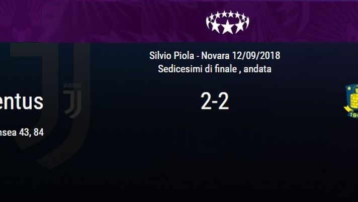 | STATISTICHE DELLA GARA:TIRI (nello specchio): Juventus 8 (4)-Brøndby 6 (2)CORNER: Juventus 3-Brøndby 3ATTACCHI PERICOLOSI: Juventus 16-Brøndby 18 |